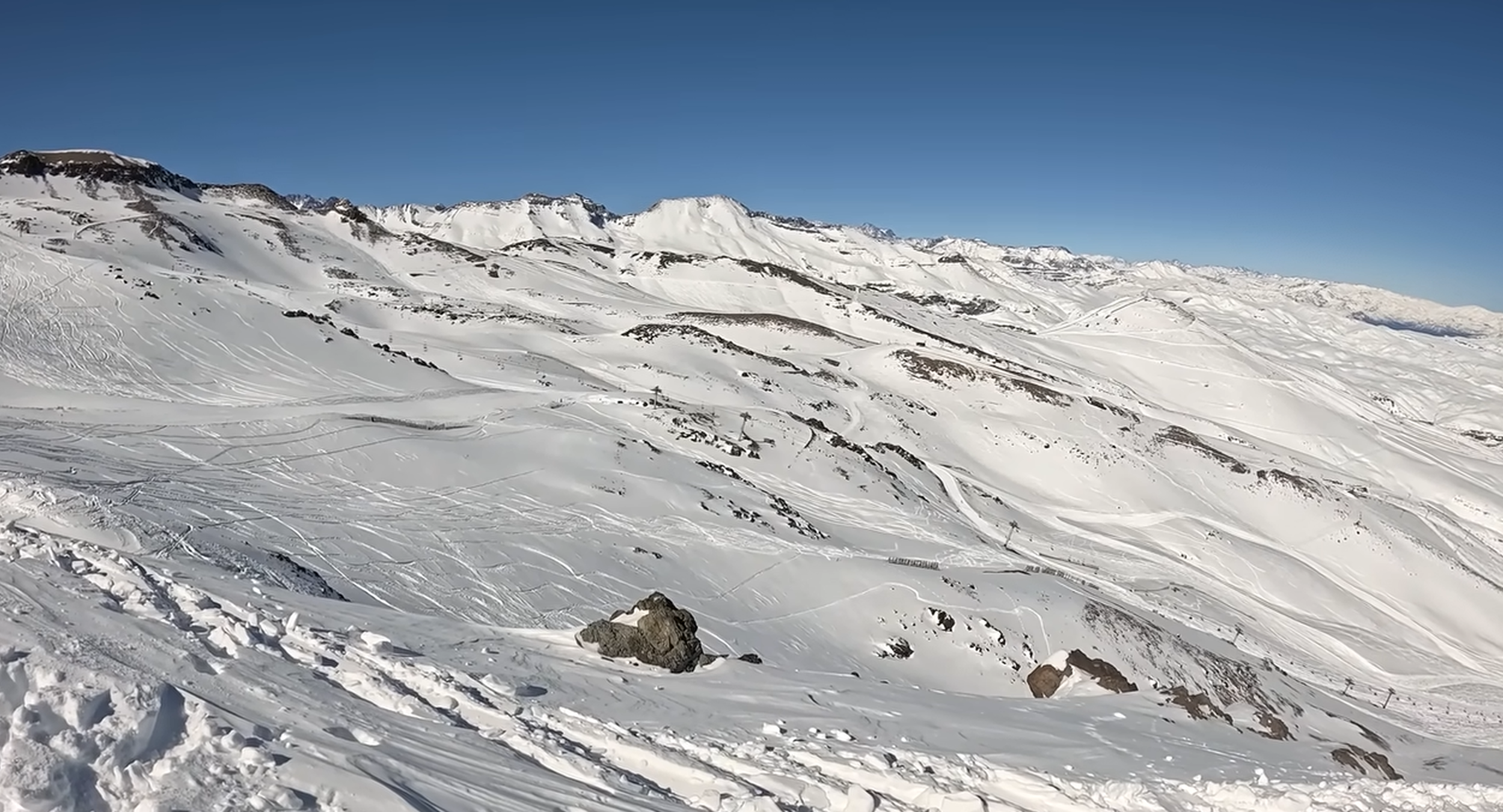 That said, snow accumulation at La Parva tends to be feast or famine. The resort may see some big storms throughout the season, but they’re often followed by long periods of ample sunshine and drought conditions. In fact, the resort’s season-long snow base is often formed off of just a handful of storms, with the quantity of snow these accumulation events bring playing a major role in conditions for the following days, weeks, or even months. During bad snow years, the resort may be reliant almost entirely on snowmaking to maintain operations. La Parva’s on-piste trails maintain a baseline-level of resiliency thanks to the mountain ops team, but in bad years, the conditions just off the maintained trails can be just about bare. As a result, those hoping to ski or ride the off-piste and chancing it during a bad year may be disappointed.