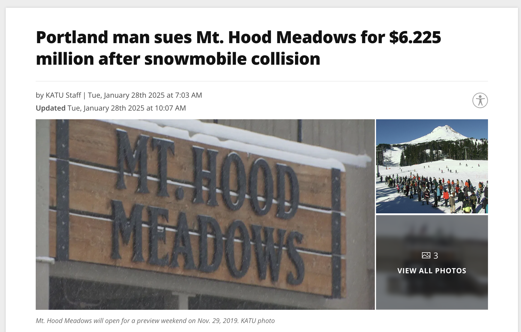 So realistically-speaking, what could actually happen that would cause MountainGuard to leave—and consequently trigger a statewide resort shutdown? Well, the company did cite that a single major verdict could cause it to leave the state, and a few major cases making their way through the legal system could very well be the “nuclear verdict” that would force the company’s hand. Take, for example, the most high-profile active case: a $6.2 million lawsuit filed in early 2025 by a ski coach who was struck by a snowmobile at Mount Hood Meadows. While the case is likely months away from settlement or trial, it is significant—and could result in a large payout. In addition, the wrongful-death lawsuit against Mount Bachelor, which seeks nearly $50 million in damages, is still winding through the legal process after being filed in August 2022. There could be other non-public cases or other factors that could cause MountainGuard to leave in the coming months too; for example, the Mount Hood Skibowl case that forced the mountain to shut down its bike park wasn’t even reported on until the eight-figure verdict came down.
