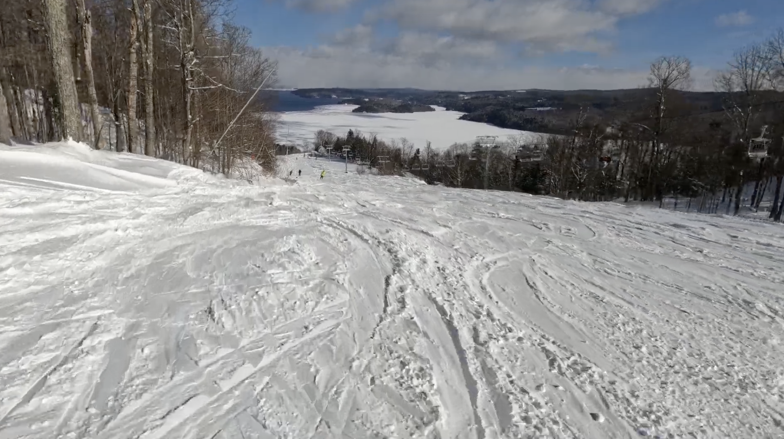Getting to intermediate proficiency at Owl’s Head opens up essentially the whole mountain. The biggest positive is the wide, open, massive pistes available from every lift, combined with the truly spectacular views along these trails. Guests should be sure to check out the #14 Lilly’s Leap trail, which arguably has the best views of the whole resort, as well as the best sense of isolation. For some, this trail alone will make the experience at Owl’s Head worth the day trip. Another standout blue is the #25 Upward Trail, which offers the closest lake views of any blue trail and sees even fewer crowds than the already fairly-empty upper-mountain runs. Grooming, particularly off Chair A serving the majority of intermediate terrain, can be sparse particularly on powder days, but other times, the resort’s blues are perennially groomed.