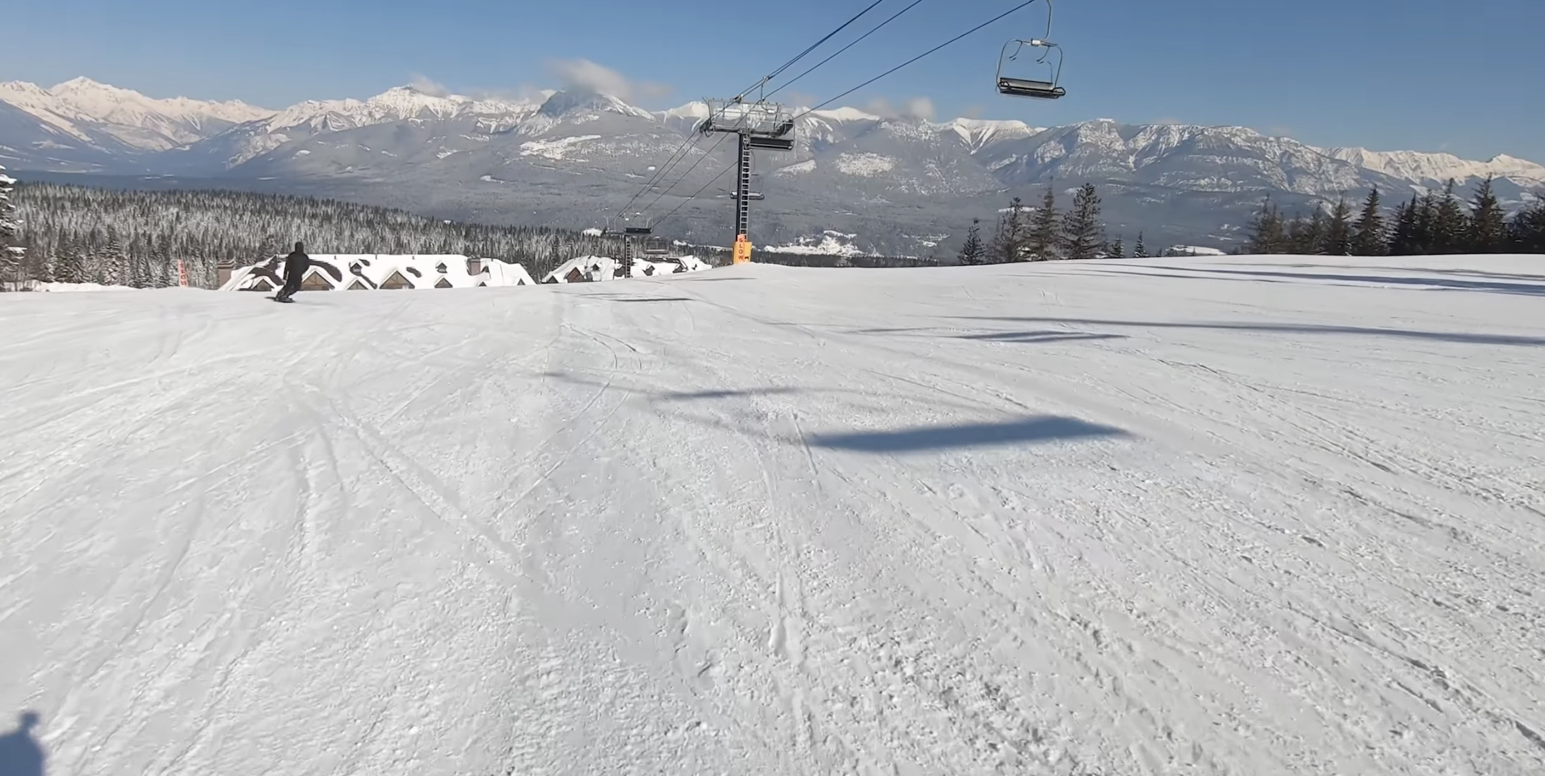 That’s why it might be so surprising to hear that Sun Peaks is also home to one of the most dreadfully out-of-place bottom-to-top lift rides we’ve seen anywhere: the 9,500-foot-long Burfield Quad. At the time of this recording, this lift is the longest fixed-grip chairlift in all of North America—and potentially the world—and it is, in fact, longer than all but about a dozen high-speed chairlifts on the continent. And with a length that long on a ride that moves no faster than any other fixed-grip quad, a single trip along the entire length of this lift takes 21 minutes, a ride time that’s so long it’s almost insulting to you as a paying guest. This makes the Burfield Quad home to the longest chairlift ride you will probably experience anywhere in your life.
