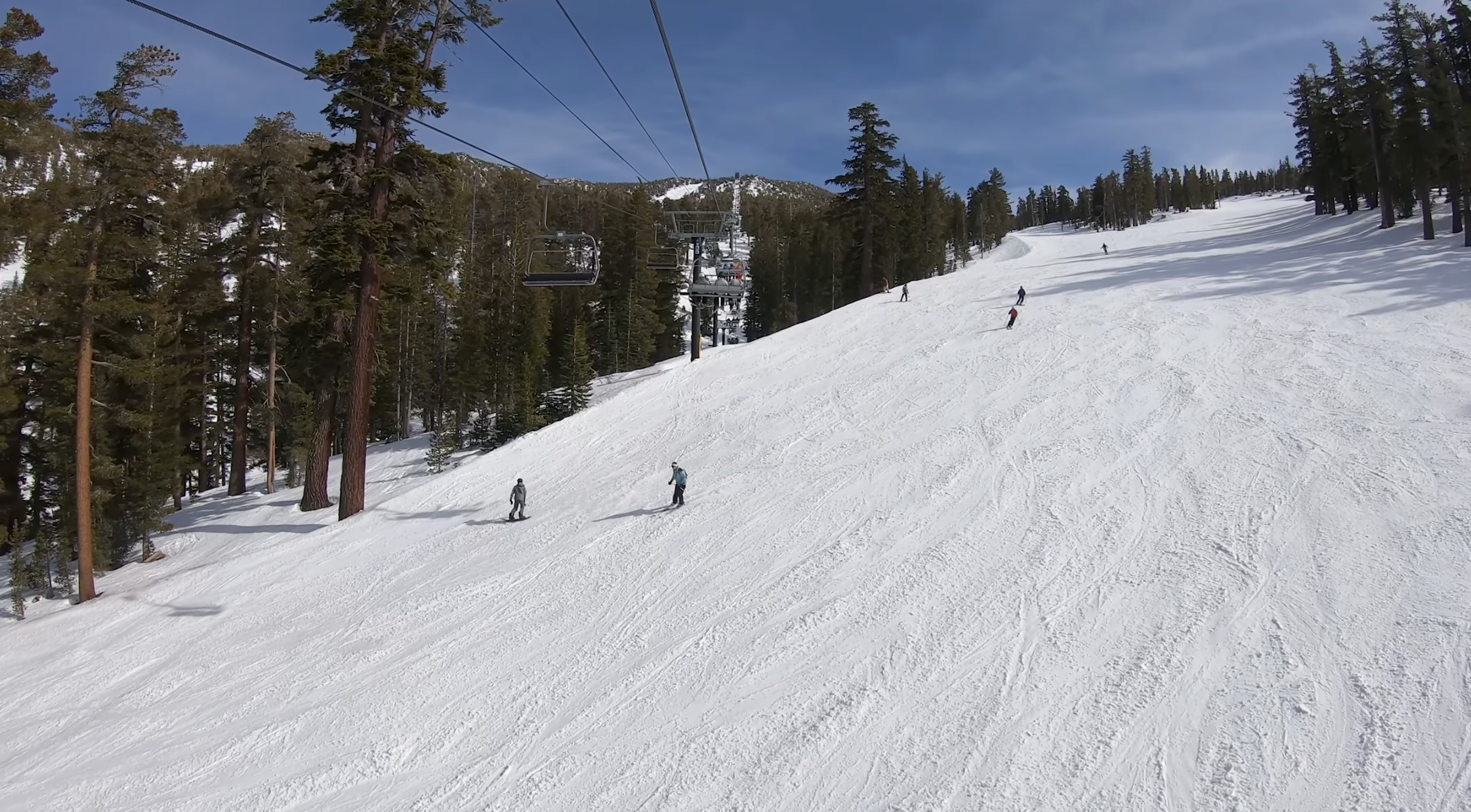 This turns Sky Express into a massive choke point — especially during busy periods and particularly near the end of the day — because there are no true redundancies for traveling between these two major mountain areas, or at least from the California side back to the Nevada side. Sky serves some of the best upper-intermediate to advanced terrain at the resort as well, so it’s not just frustrating to get to Nevada, but also for the many people that would like to lap that terrain. Also, since it’s in such a prominent location, the Sky Express is fairly susceptible to wind holds — and if you’re on the California side and need to get back to the Nevada side under this circumstance, you’re just out of luck.