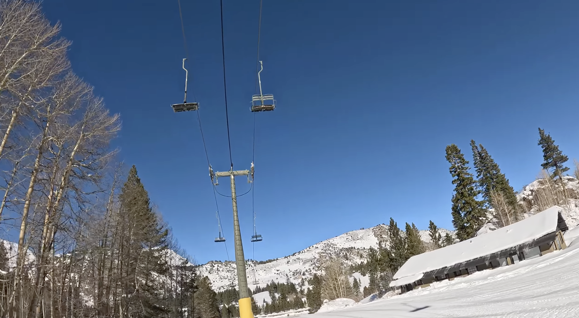 First, we have to cover the lift that feels the most out of place from an infrastructure standpoint, and that is the Galaxy lift on the Nevada side of the resort. The Galaxy lift serves some nice intermediate terrain, including glades, but it’s not exactly a short ride. It’s also a bottom-out lift, meaning you don’t ride it to access terrain — you ride it to get out. And the worst part is that it’s an agonizingly slow fixed-grip triple chair that takes over 13 minutes to ride. You don’t realize how long it is until you end up at the bottom of the lift with no skiable egress and absolutely no choice but to ride it out.