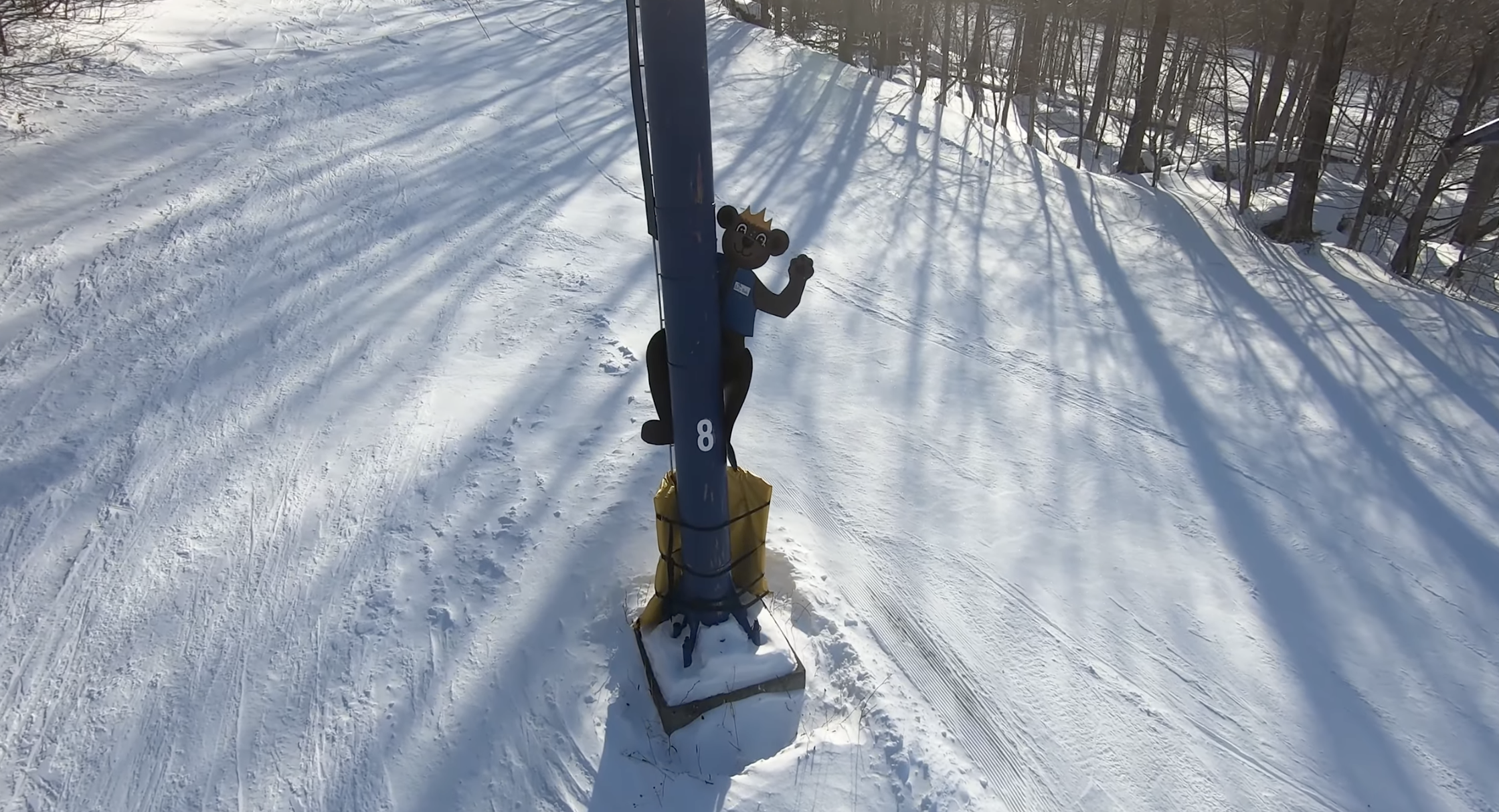 Despite being the same fixed-grip double chair on paper as every other ski lift at Smugglers’ Notch, the Mogul Mouse’s Magic Lift — which at first may only be distinguished from the parallel Village Lift by its blue chairs and inviting animal mascot cutouts along the lift line — is actually significantly slower than all of those other lifts. It runs at roughly the same speed as a traditional bunny hill lift, which does make some sense, since this is effectively Smugglers’ Notch’s bunny hill chairlift. But while this lift may be easier to load for beginners and ski school groups, it is an absolutely miserable ride, taking approximately 15 minutes. To make matters worse, it runs immediately parallel to the Village Lift the entire way — a lift that operates at least 50% faster and gets you uphill in five fewer minutes. As you watch chair after chair on the neighboring Village Lift pass you by, with effectively no benefit from choosing the Mogul Mouse’s Magic Lift unless you are a true beginner who struggles with loading or unloading, it becomes very difficult not to spend those 15 minutes completely regretting your decision.